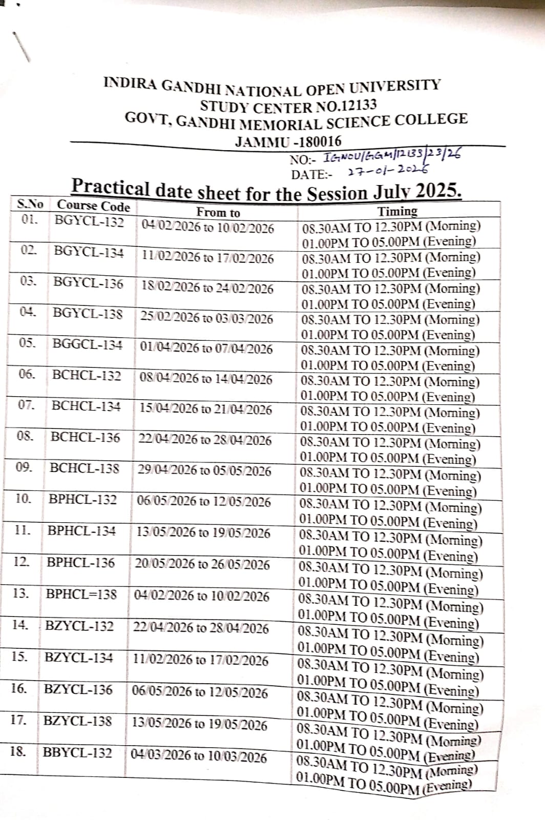 BSc practical Schedule MSCZOO and BSCM Fresh July 2025